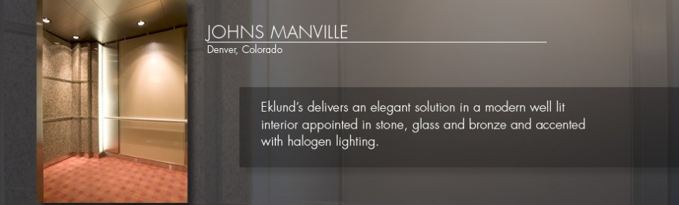 Welcome to Eklund's. We provide the building industry with vertical transportation solutions. Eklund's has been in business as a custom cab manufacturer and cab interior finish-out fabricator since 1984. Eklund's produces specialty elevator cabs and entries including glass observation, freight, service, front and rear opening and a wide variety of specialty components including custom elevator panels, ceilings, and handrails. Our standard cab line is enhanced by the use of our Custom Cab Designer. This on-line design tool allows you to specify the interior components of the elevator cab in minutes. Pre-engineered panels and preselected materials will shorten production schedules and save you money. The Custom Cab Designer delivers a custom cab look for a standard cab price.
